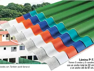 Web Lamina fibra vidrio p 3 9 verde 2. Las láminas onduladas Duralita P-7 tienen 5 ondas y 5 canales con un ancho total de 92 cm y un ancho útil de 87 cms. Web Lamina Teja Española.